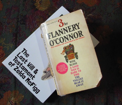 The anthology is in three parts: a novel (Wise Blood), a collection of short stories and a novella ("A Good Man Is Hard to Find"), and another novel (The Violent Bear It Away). Since I couldn't remember what I'd previously read, I went from back to front in the hope of sampling the new material first.