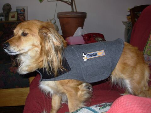 Even though I’ve researched and sampled almost every trauma therapy there is, even though I’ve published stories about some of the amazing new healing modalities, even though I’ve experienced occasional instant releases from fear through EMDR and EFT (see more on these on my Art of Collapsing blog from 2009 and the attached article, Radical Change Through Radical Disruption), I was skeptical that the Thundershirt™ would calm my dog Maya’s terror at thunder, vacuum cleaner, and rain-on-the-roof noises.